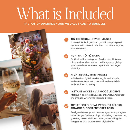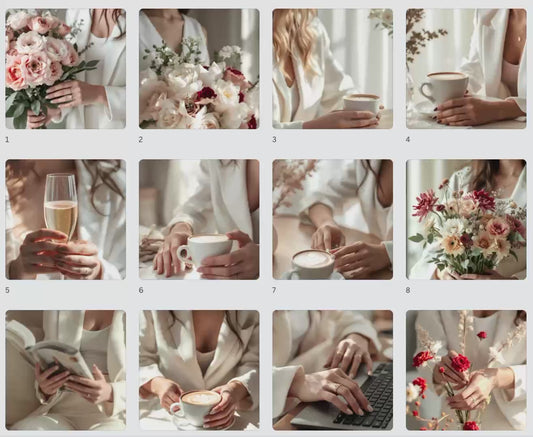 Luxury Feminine Branding Stock Photos | 100+ Neutral Aesthetic Images for Canva | MRR & PLR Faceless Marketing Content Bank