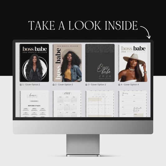 Boss Babe 2026 Digital Planner – Hyperlinked Canva Template with 4 Covers (GoodNotes & Notability Ready)