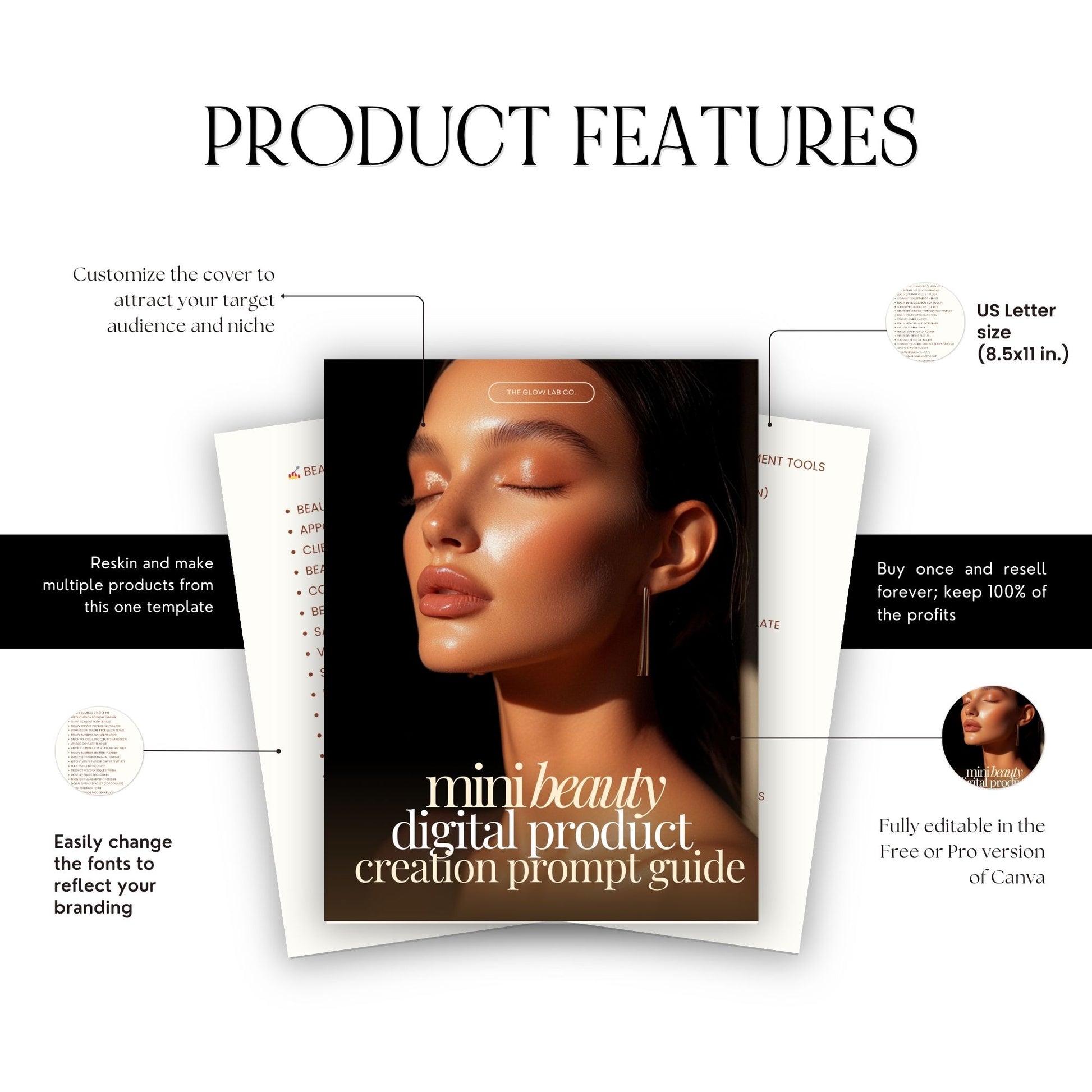 Beauty Digital Product Ideas + Prompts Bundle (300) | Canva Editable | PLR + MRR Resell Rights