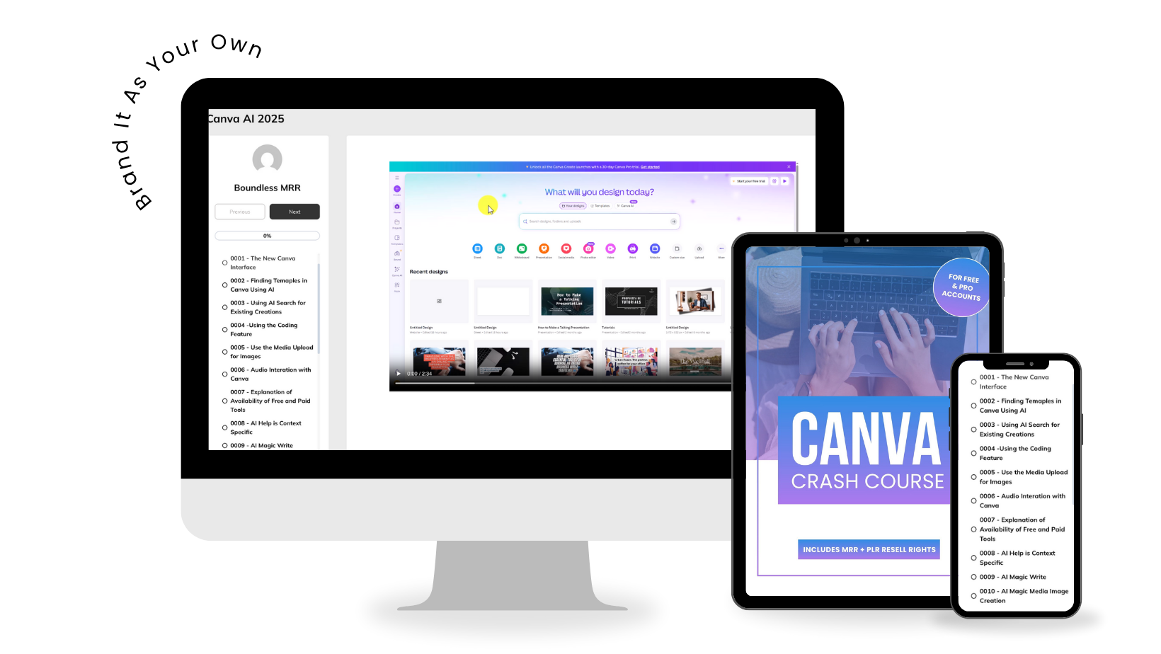 You’ll receive 20 ready-to-upload MP4 video lessons covering Canva’s newest AI tools. The videos are organized and formatted for easy upload into the course platform of your choice—like Systeme.io, Teachable, ThriveCart Learn, among others. You’ll also get a bonus course guide delivered via an editable Canva template link, so you can fully rebrand it, add your own links, or personalize it for your audience.