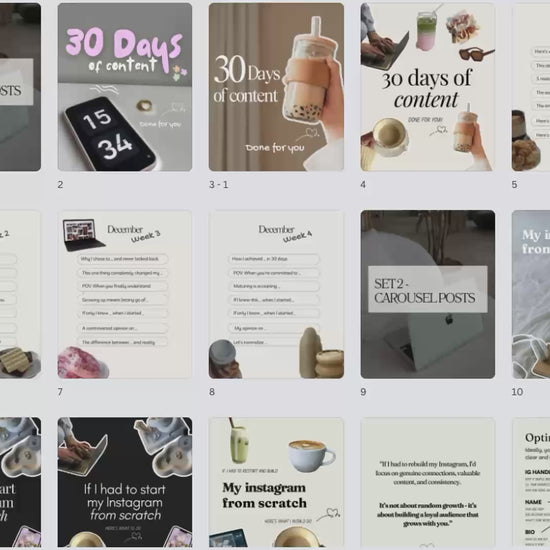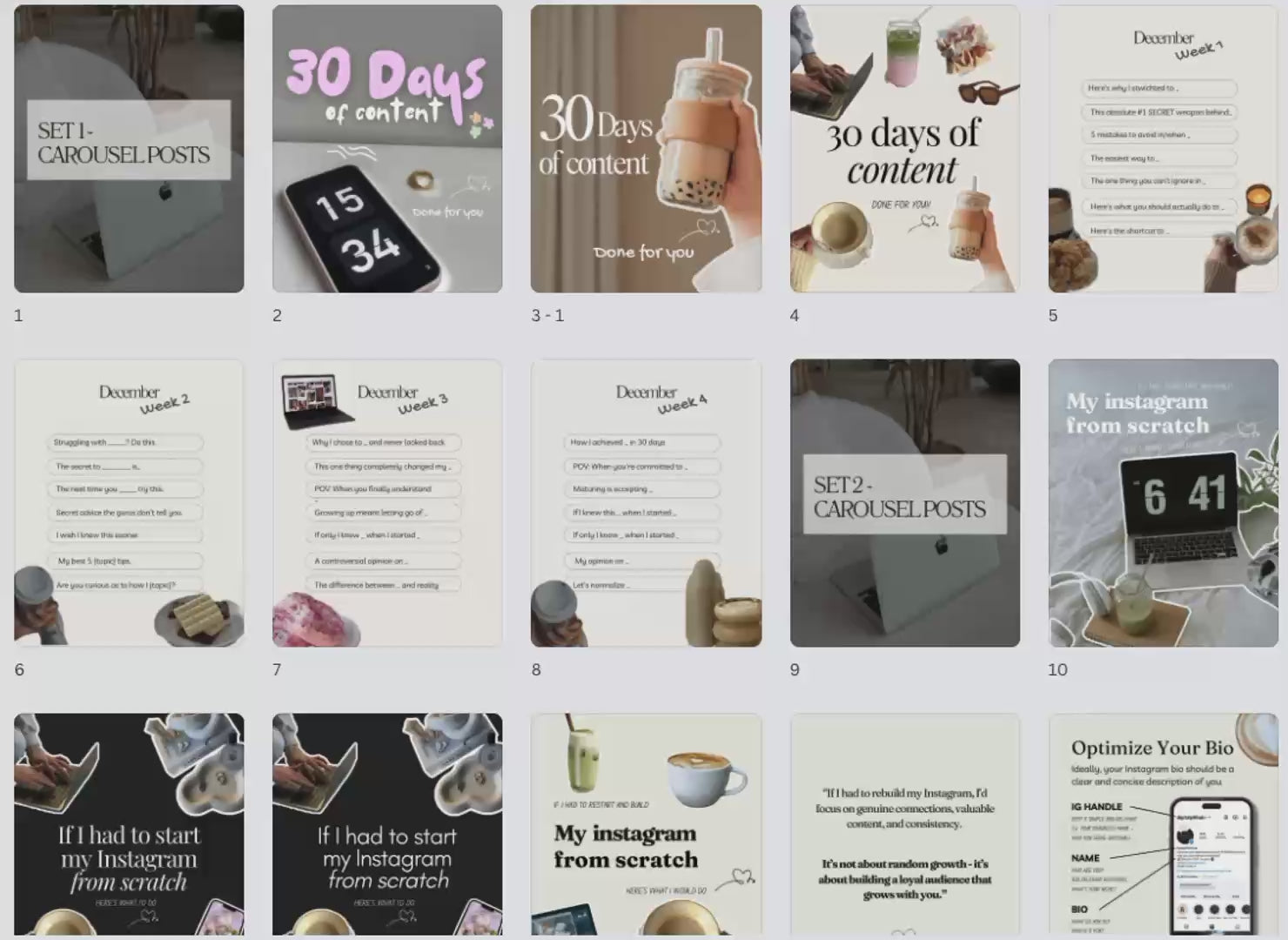 • 100 Carousel Templates: scrapbook layouts designed to help stop the scroll, increase saves, and keep your feed cohesive