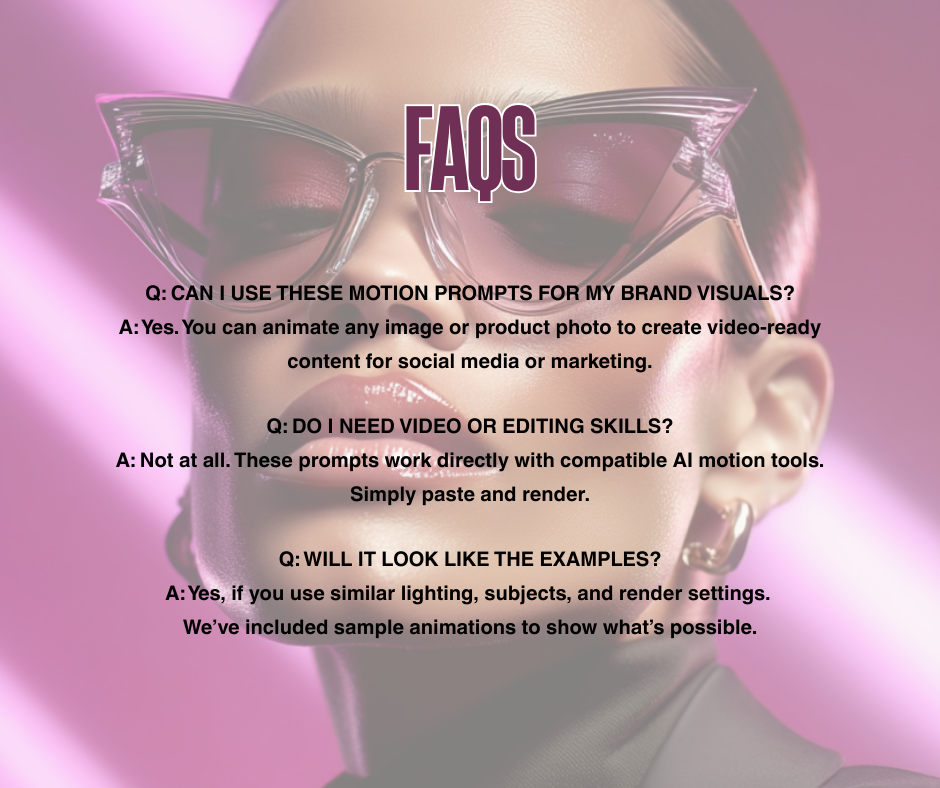 A: A Canva-editable guide filled with cinematic Motion FX prompts you can copy and paste into your preferred AI image-to-video tool to create animated clips for social media.