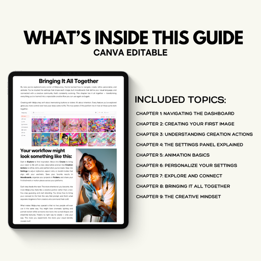 MidJourney 101 Guide — Create Professional AI Images With Confidence | Canva Editable | MRR + PLR