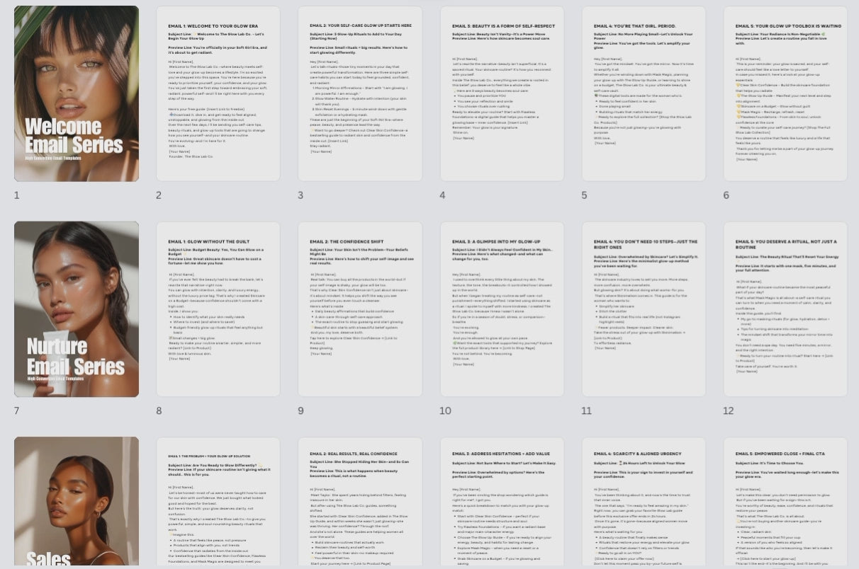 Skincare & Beauty Email Marketing Series | Canva Editable Templates with PLR & MRR Resell Rights
